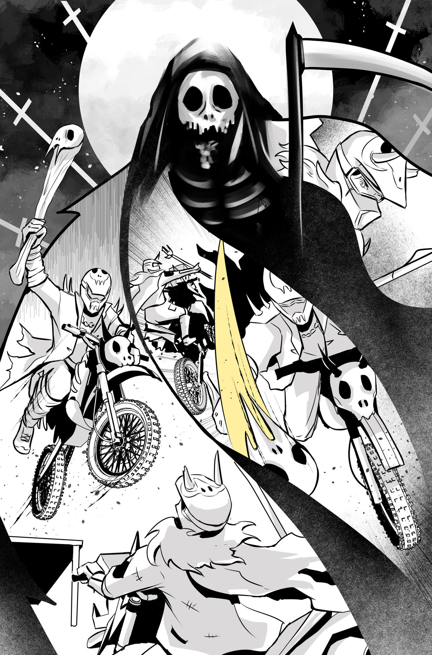 Set in a sci-fi future after a decade of warfare against the despot Baron Klaus, a rogue embittered soldier decides to storm the Baron’s manor and kill him herself. A year later, stories are sung of her heroism, but the mystery of her motives remain. Thus begins the tale of COMMANDER RAO, a thrilling fast-paced action comic of how violence begets violence, and how all the heroics of warfare are meaningless in the eyes of what has been lost.(W/A) Fell Hound, (L) Lettersquids